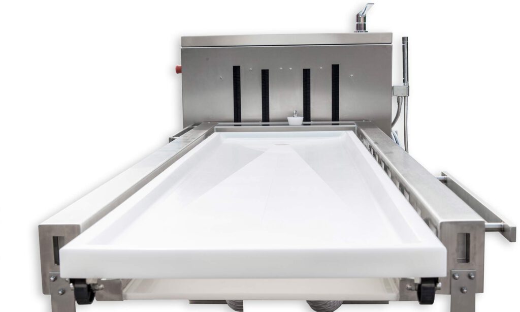 „Im Halbkreis angeordnete Körperspender-Konservierungsanlage mit Krananlage in einem denkmalgeschützten Gebäude. Baujahr: 2013 Kapazität: Insgesamt 130 [...]
